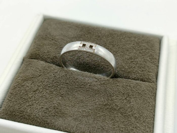 今回お持ち込みいただいたのは、フランスの至宝・エルメスが手掛ける 「ヘラクレスリング K18WG(ホワイトゴールド)」。 エルメスの頭文字である「H」をモチーフに、ギリシャ神話の英雄の名を冠したこのリングは、シンプルながらも圧倒的な気品と力強さを兼ね備えた、時代に左右されない名作ジュエリーです。